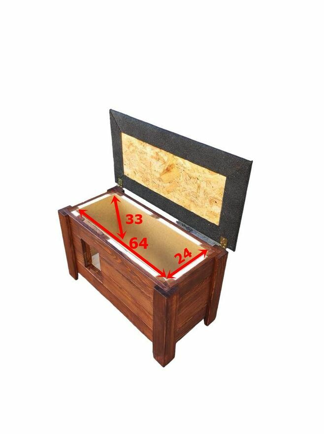 Wymiary domku mierzone wewnątrz: 24 x 64 cm (szerokość x długość)